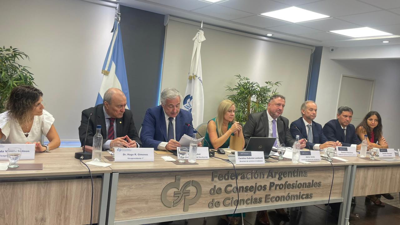 Por FACPCE participaron Hugo Giménez, Vicepresidente 1°; Valeria Salinas, Vicepresidenta 2°; Patricia Sánchez Ruiz, Secretaria; Julio Ramírez, Tesorero; y Ana María Daqua, Gerente General.